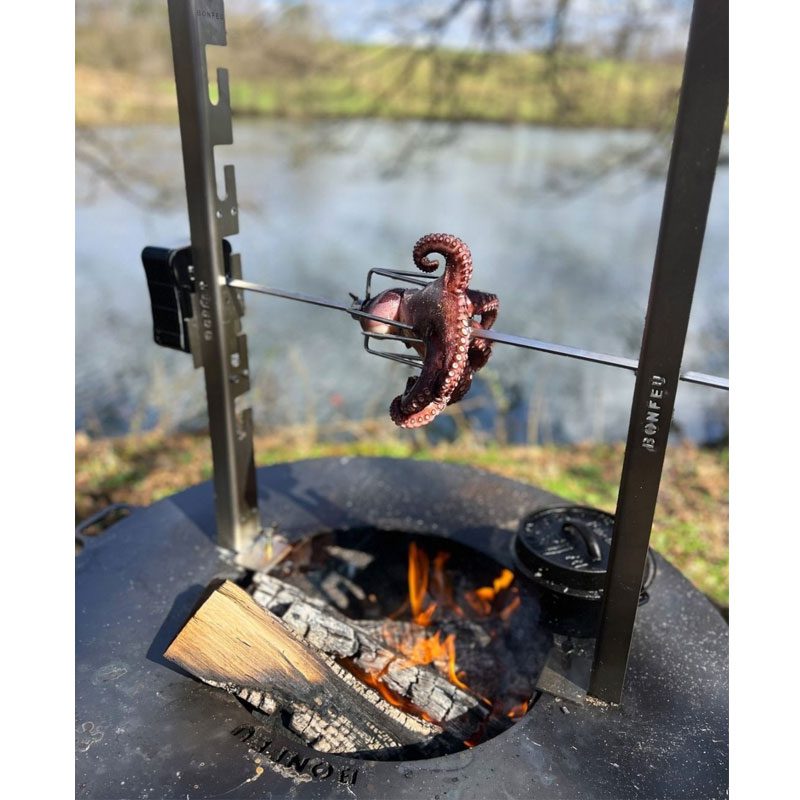 Incluye: gancho para olla, brocheta con cuatro abrazaderas y brocheta con dos abrazaderas.