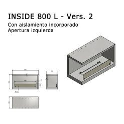 Descubre la chimenea de bioetanol INSIDE 800 L/P Vers.2 de Infire, abierta a dos caras (izquierda o derecha), ofreciendo fuego real sin salida de humos.